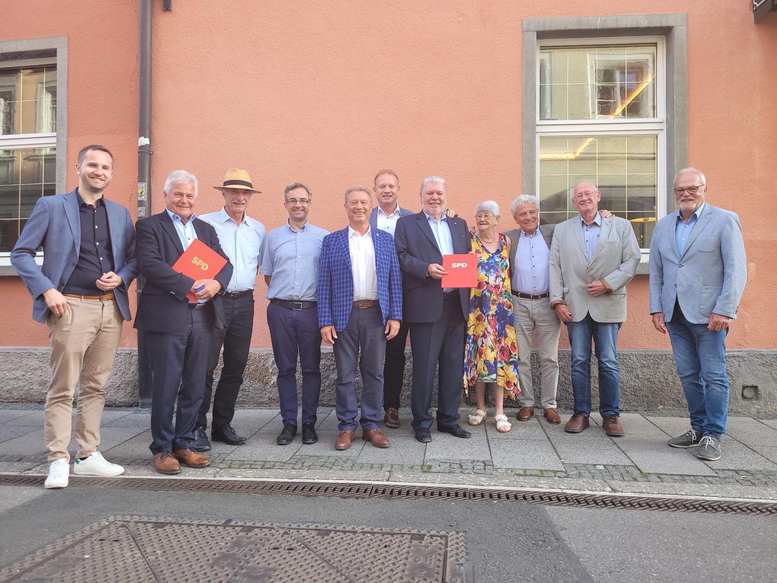 Von links: Leon Hahn, (SPD-Kreisvorsitzender) , Michael Wolkendorf (50 J.), Oswald Burger 50 J), Christian Gospodarek, (OV-Vorsitzender), Wilfred Zöbisch (50 J.) OB Jan Zeitler, Ministerpräsident a.D. Kurt Beck, Margot Hess (40 J.), Werner Rummel (50 J.), Dr. Ludwig Auer (50 J.), Norbert Zeller, (Vorsitzender SPD-Kreistagsfraktion)
